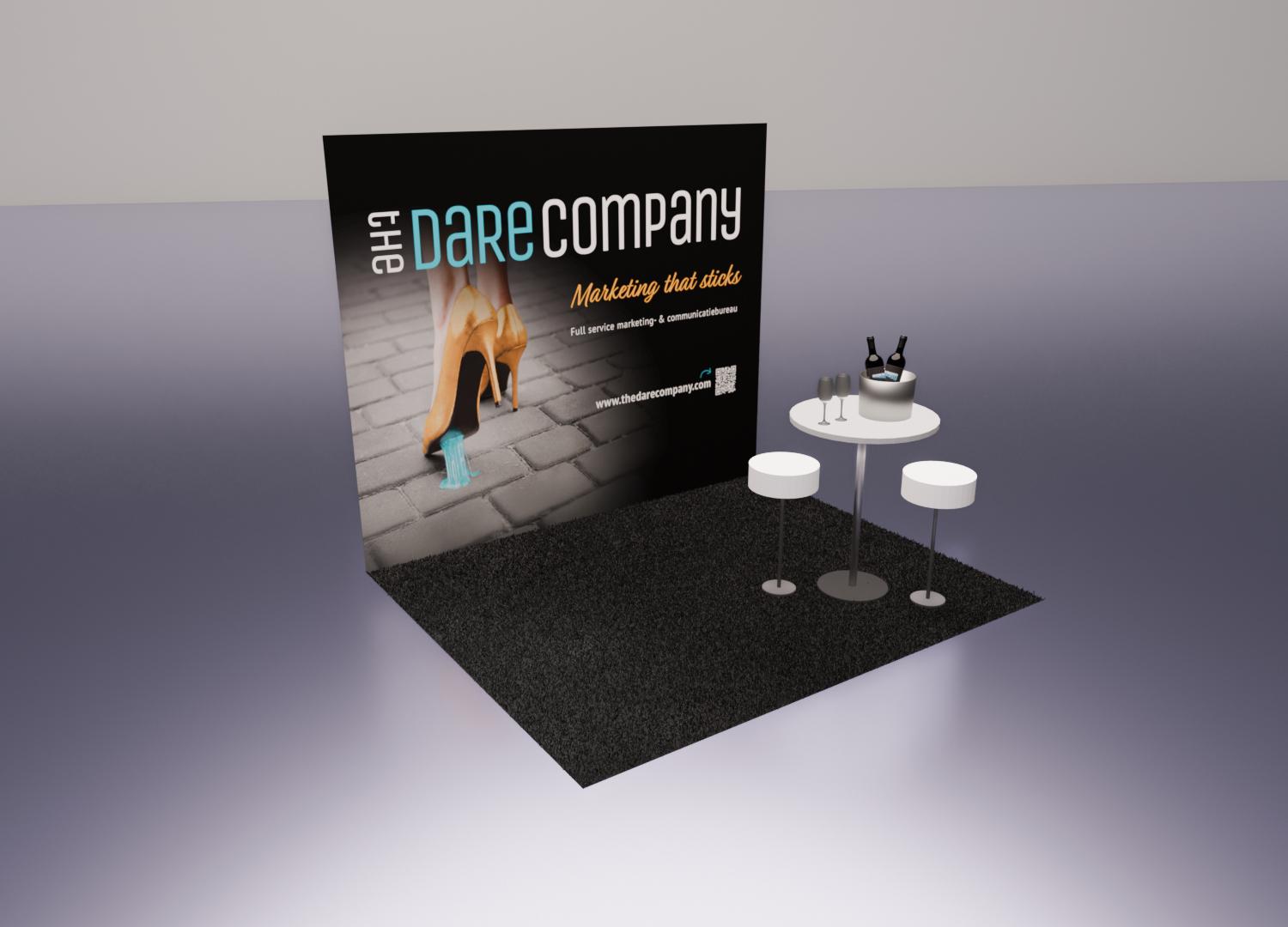 Maak een sterke indruk op bezoekers met een luxe beurswand en statafel, volledig verzorgd en klaar voor gebruik: